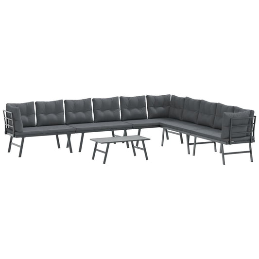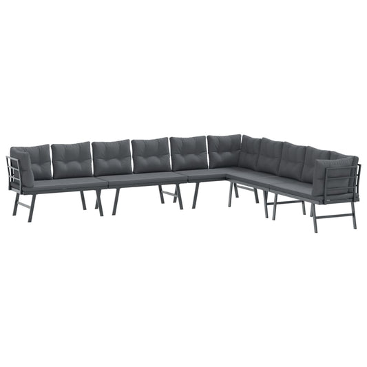 Set Panche Giardino Cuscini 9pz Nere Acciaio Verniciato Polvere