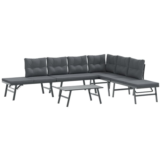Set Panche Giardino Cuscini 7pz Nere Acciaio Verniciato Polvere