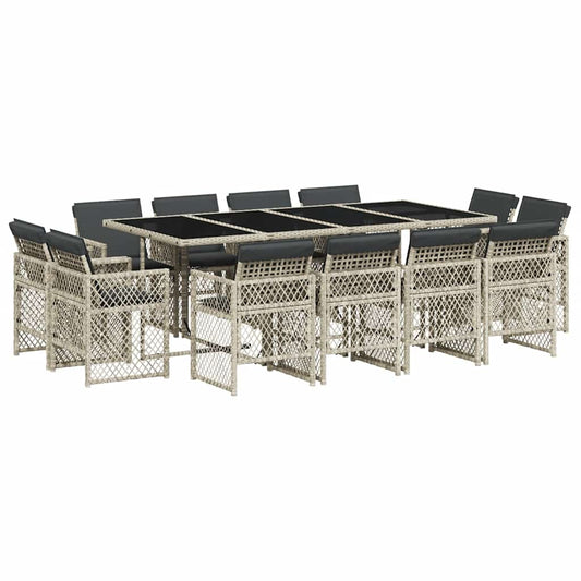 Set da Pranzo da Giardino 13pz con Cuscini Grigio in Polyrattan