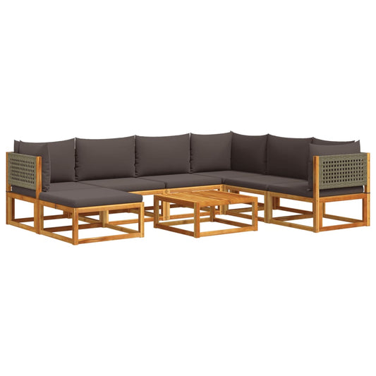 Set di divani da giardino 9 pezzi con cuscini in legno di acacia e rattan