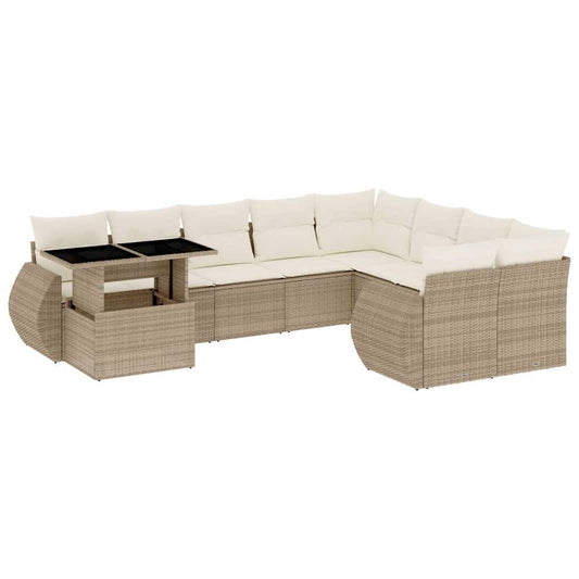 Set Divano da Giardino 10 pz con Cuscini Beige in Polyrattan
