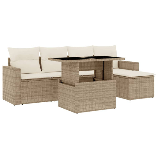 Set Divano da Giardino 5 pz con Cuscini Beige in Polyrattan