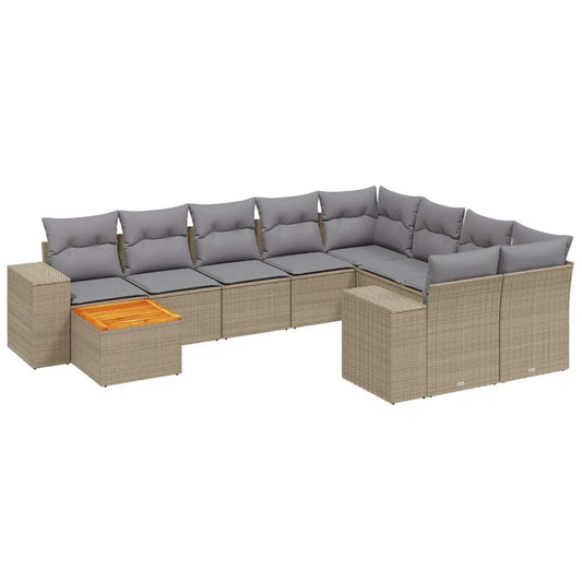Set Divani da Giardino 11 pz con Cuscini Beige in Polyrattan