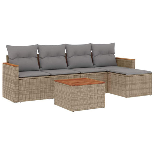 Set Divano da Giardino 6 pz con Cuscini Beige in Polyrattan