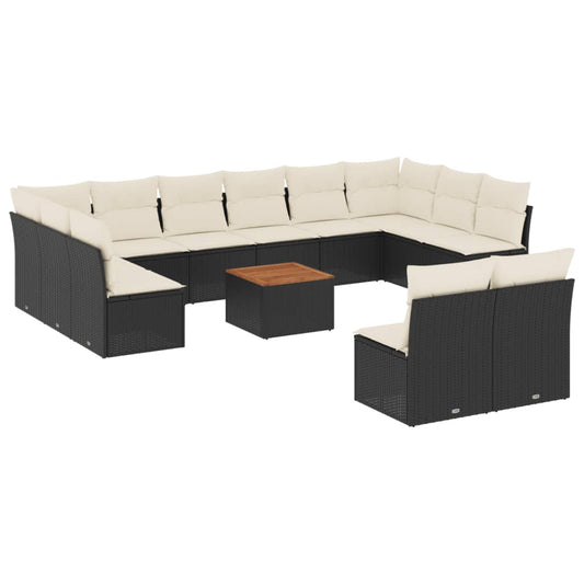 Set Divani da Giardino 13pz con Cuscini Nero in Polyrattan