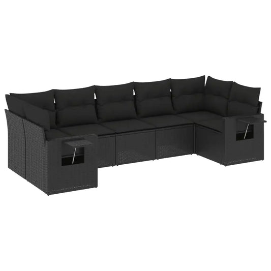 Set Divani da Giardino con Cuscini 7pz Nero Polyrattan