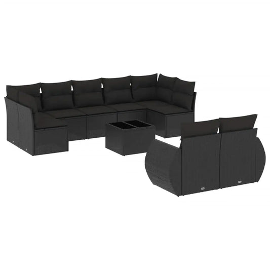Set Divani da Giardino 10pz con Cuscini in Polyrattan Nero