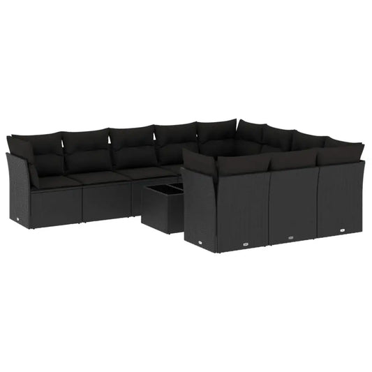 Set Divani da Giardino 11 pz con Cuscini in Polyrattan Nero