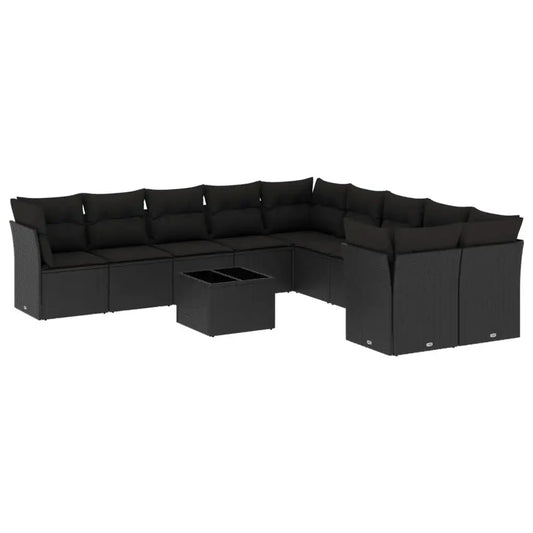 Set Divani da Giardino 11 pz con Cuscini in Polyrattan Nero