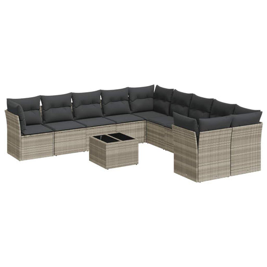 Set Divano Giardino 10 pz con Cuscini Grigio Chiaro Polyrattan