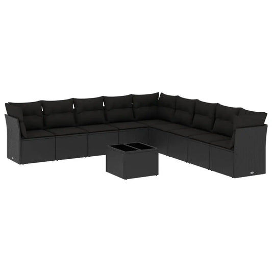 Set Divani da Giardino 11 pz con Cuscini in Polyrattan Nero