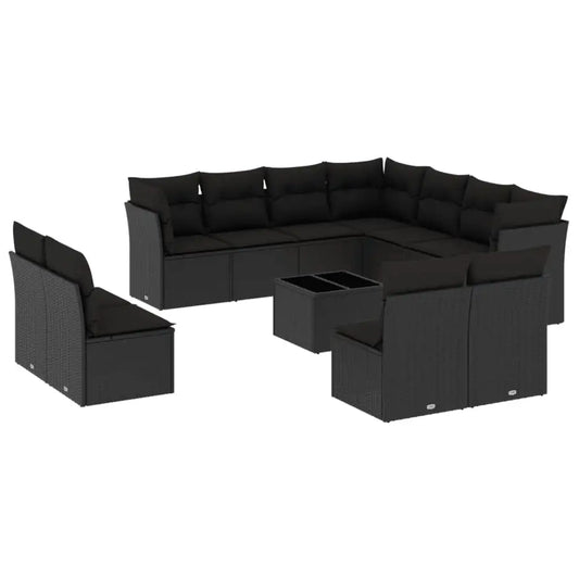 Set Divani da Giardino 12 pz con Cuscini Nero in Polyrattan