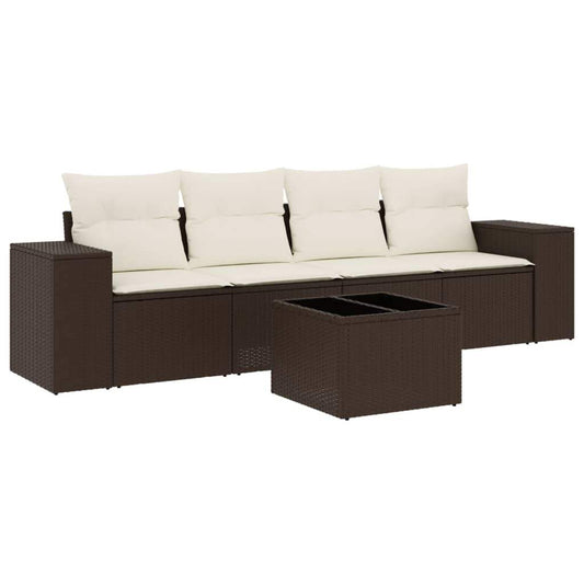 Set Divano da Giardino 5 pz con Cuscini Marrone in Polyrattan