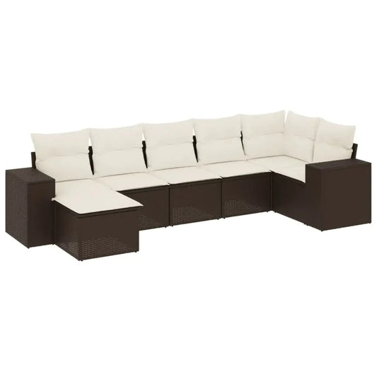 Set Divani da Giardino 7 pz con Cuscini Marrone in Polyrattan