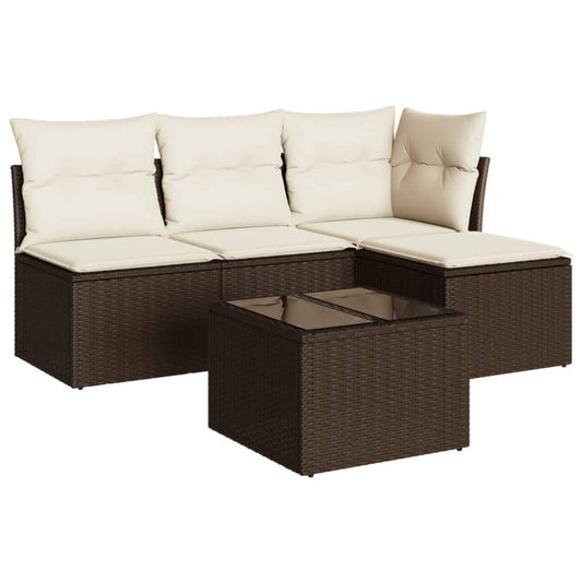 Set Divano da Giardino 5 pz con Cuscini Marrone in Polyrattan