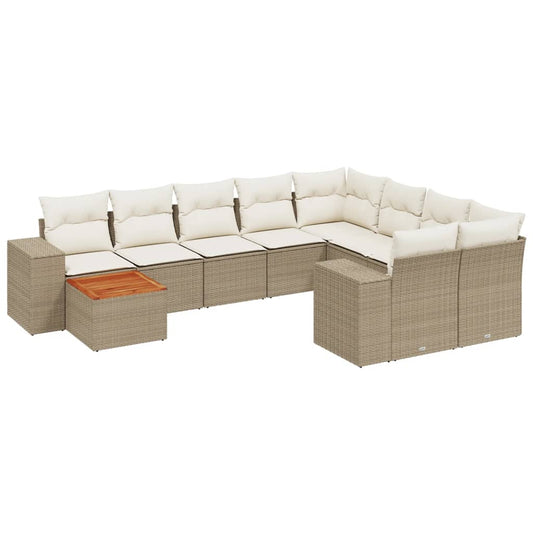 Set Divano da Giardino 10 pz con Cuscini Beige in Polyrattan