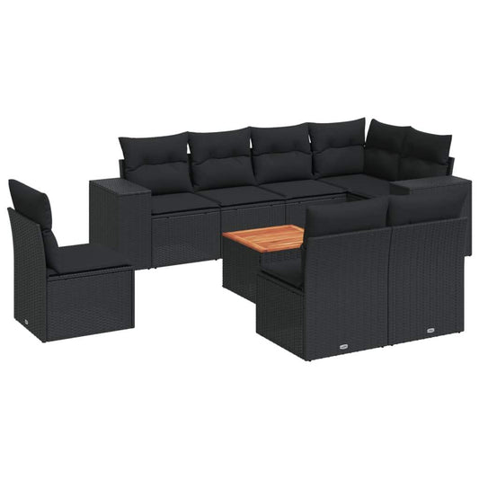 Set Divani da Giardino 9 pz con Cuscini Nero in Polyrattan