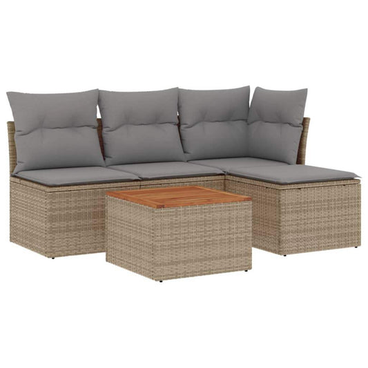 Set Divano da Giardino 5 pz con Cuscini Beige in Polyrattan