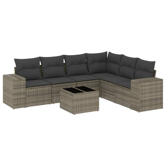 Set Divani da Giardino 7 pz con Cuscini Grigio in Polyrattan