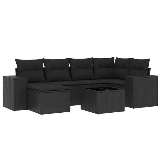 Set Divani da Giardino con Cuscini 7pz Nero Polyrattan