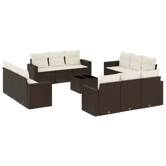 Set Divani da Giardino 13 pz con Cuscini Marrone in Polyrattan