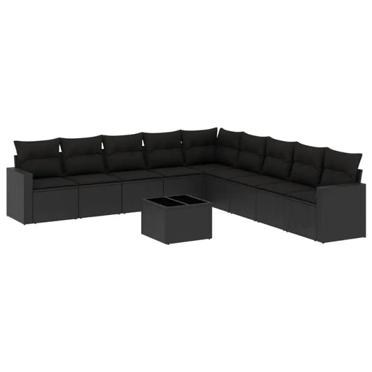 Set Divani da Giardino 10pz con Cuscini in Polyrattan Nero