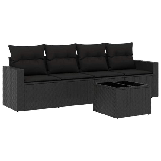 Set Divani da Giardino 5 pz con Cuscini in Polyrattan Nero