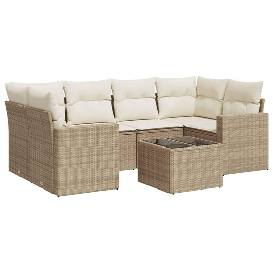 Set Divani da Giardino 7 pz con Cuscini Beige in Polyrattan