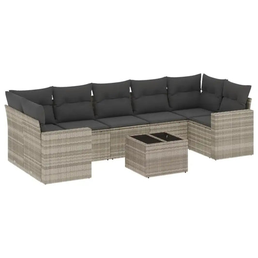 Set Divano da Giardino 8pz con Cuscini Grigio Chiaro Polyrattan