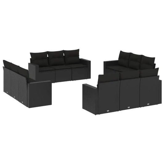 Set Divani da Giardino 12 pz con Cuscini Nero in Polyrattan