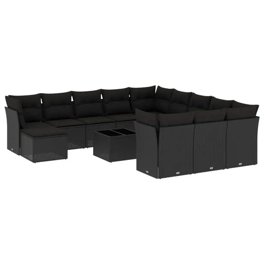 Set Divani da Giardino 13pz con Cuscini Nero in Polyrattan