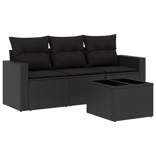 Set Divani da Giardino 4 pz con Cuscini Nero in Polyrattan