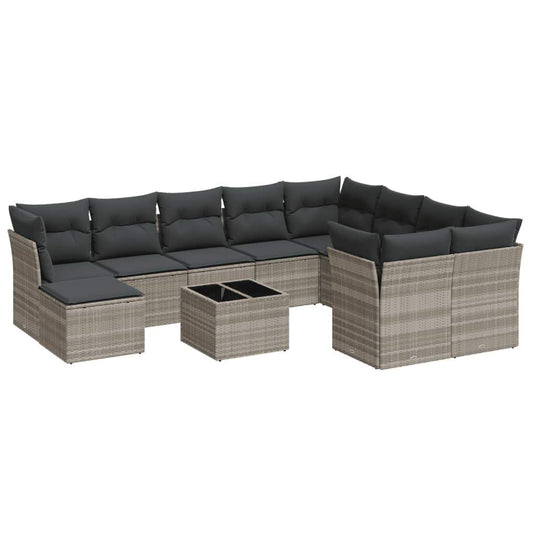 Set Divano Giardino 10 pz con Cuscini Grigio Chiaro Polyrattan