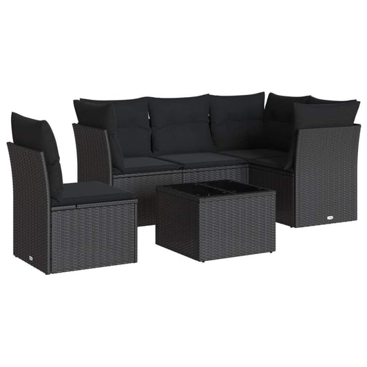 Set Divano da Giardino 6 pz con Cuscini Nero in Polyrattan