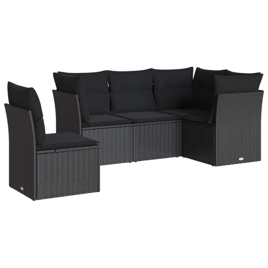 Set Divani da Giardino 5 pz con Cuscini in Polyrattan Nero