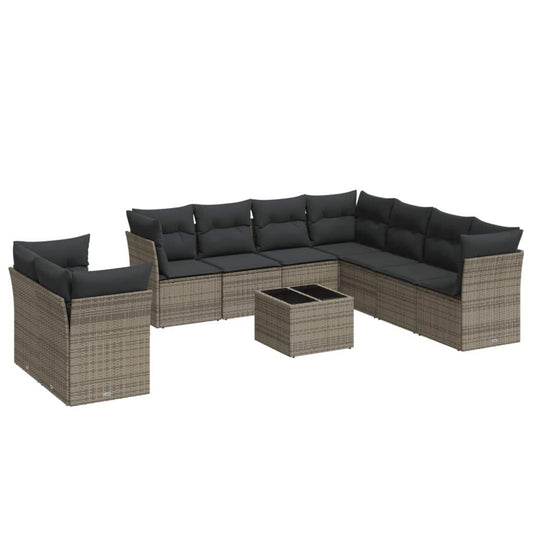 Set Divano da Giardino 10 pz con Cuscini Grigio in Polyrattan