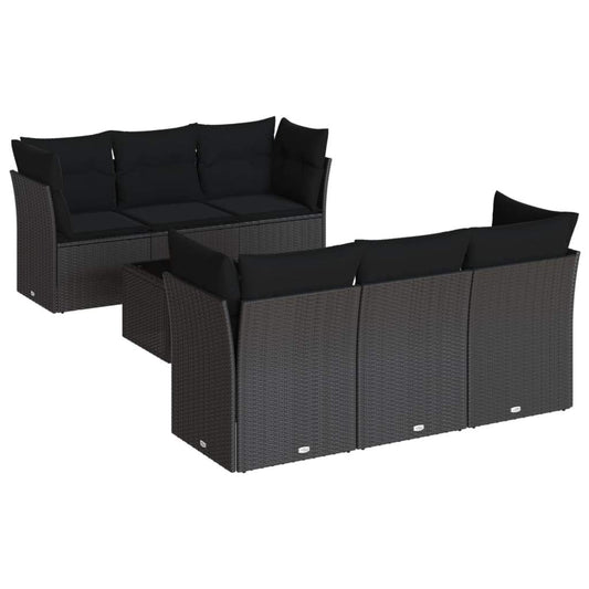 Set Divani da Giardino con Cuscini 7pz Nero Polyrattan
