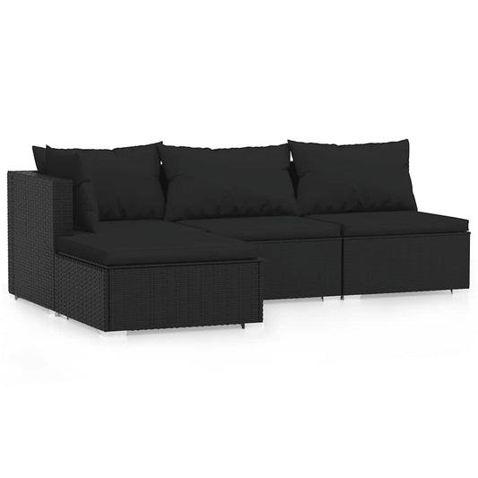 Set Divani da Giardino 4 pz con Cuscini in Polyrattan Nero