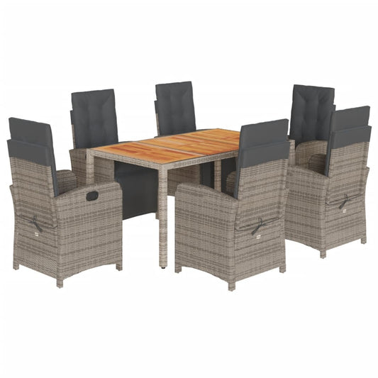 Set da Pranzo da Giardino 7 pz con Cuscini in Polyrattan Grigio