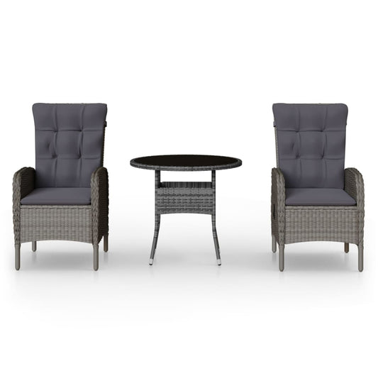 Set da Bistrot per Giardino 3 pz in Polyrattan Grigio