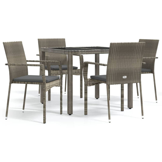 Set da Pranzo da Giardino 5 pz in Polyrattan e Vetro Grigio