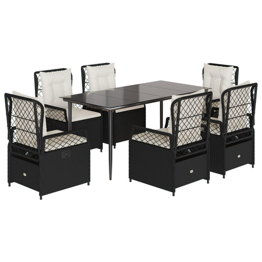 Set da Pranzo da Giardino 7 pz Nero con Cuscini in Polyrattan