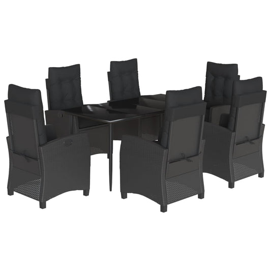 Set da Pranzo da Giardino 7 pz Nero con Cuscini in Polyrattan