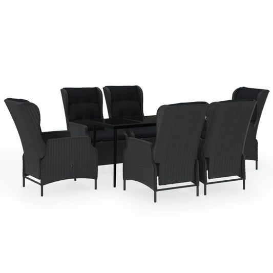 Set da Pranzo da Giardino 7 pz Nero con Cuscini in Polyrattan