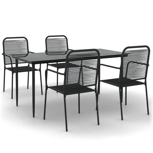 Set da Pranzo da Giardino 5 pz Nero Corda di Cotone e Acciaio