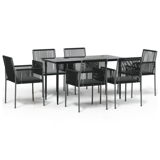 Set da Pranzo da Giardino 7 pz con Cuscini Nero