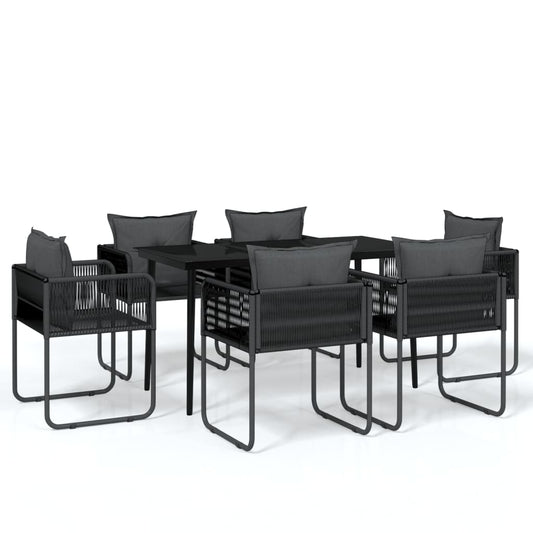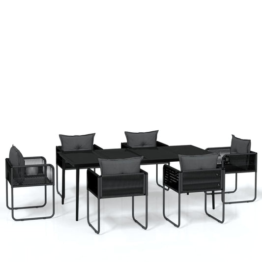 Set da Pranzo da Giardino 7 pz Nero con Cuscini in Polyrattan