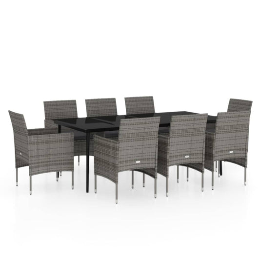 Set da Pranzo per Giardino 9 pz con Cuscini Grigio e Nero