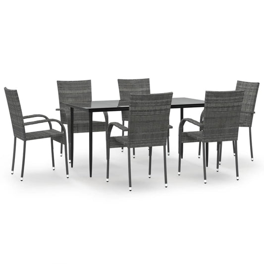 Set da Pranzo da Giardino 7 pz Grigio in Polyrattan