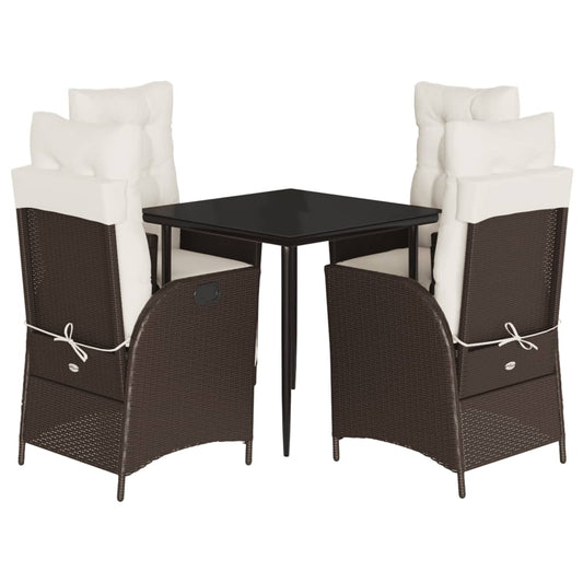 Set da Pranzo da Giardino 5pz con Cuscini in Polyrattan Marrone